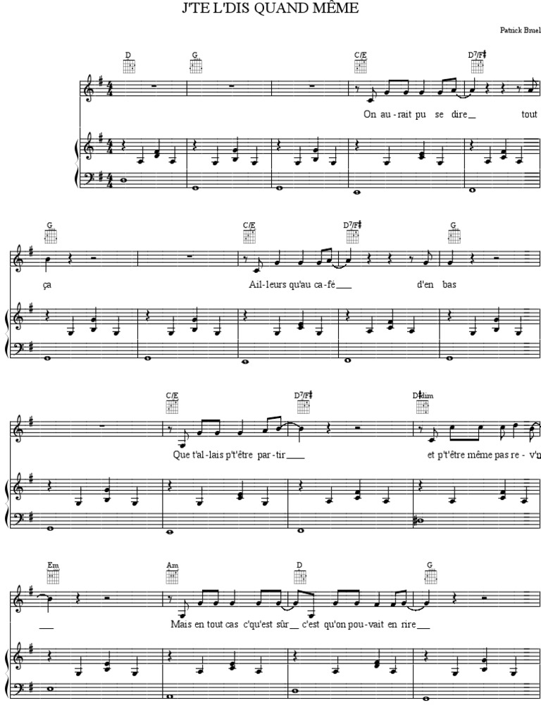 On avait l'air trop bien. + patrick bruel j'te l'dis quand meme. Piano solo avec aide la lecture = 60 j'te l'dis quand mme page (2/4).