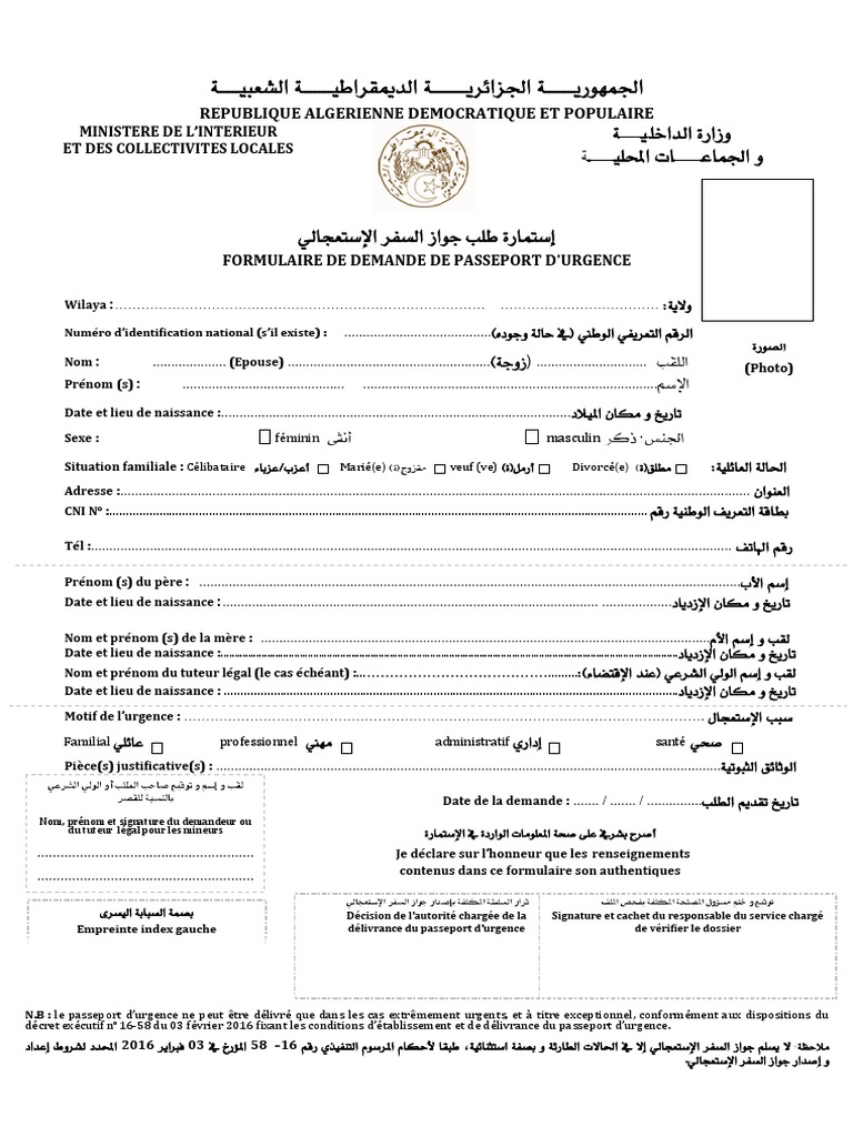 untuk "Demander Un Passeport En Urgence"